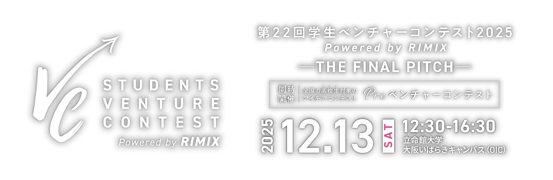 12/13「第22回学生ベンチャーコンテスト2025 Powered by RIMIX -THE FINAL PITCH-」を開催します