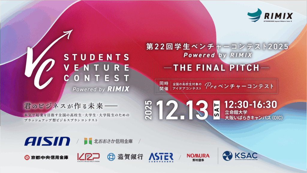 12/13「第22回学生ベンチャーコンテスト2025 Powered by RIMIX -THE FINAL PITCH-」を開催します