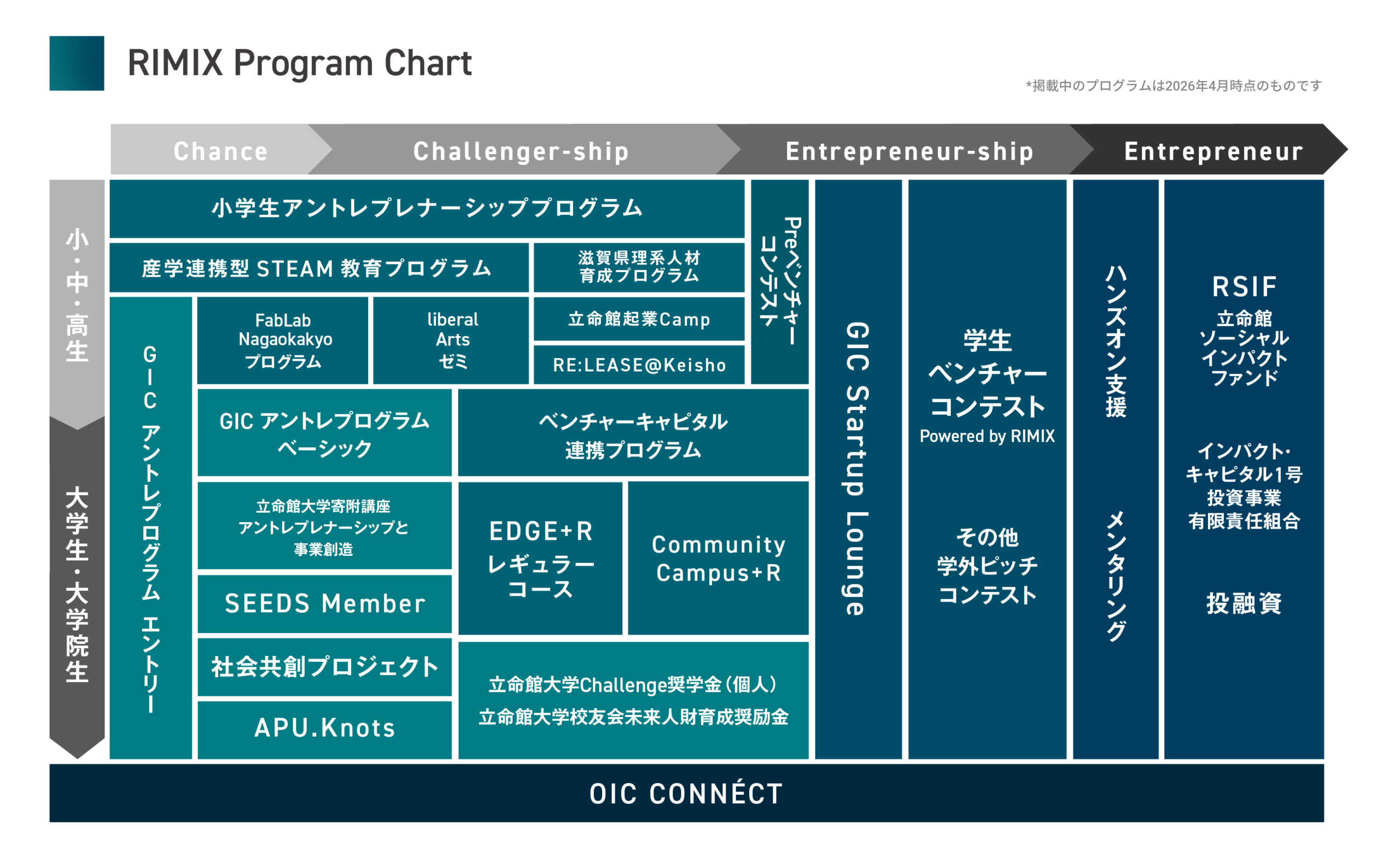 RIMIXではただ単に児童・生徒・学生・研究者らが挑戦する機会を与えるだけでなく、その先にある起業や社会への貢献に向けた活動へのサポートとして、約10億円規模のファンドの設定を行います。