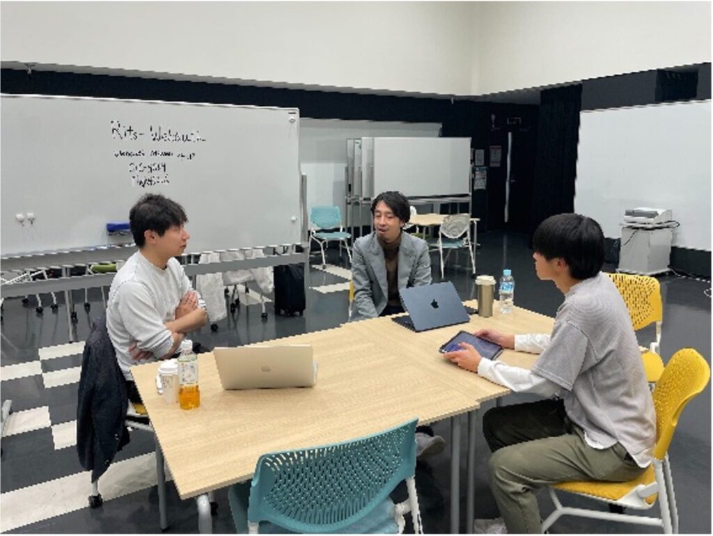 当日は18名の参加者を迎え、立命館宇治高校の酒井 淳平先生・青野 陽介先生、立命館守山の北村 啓明先生・中尾 裕史先生にもメンターとしてご参画いただきました。BLAST!SCHOOLのメンターとペアを組み、参加生徒の相談やアイディアのブラッシュアップに伴走しました。