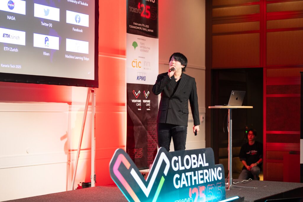 2025年2月 Venture Café GLOBAL GATHERING TOKYO 2025でのグローバルピッチイベント「Pitch2Tokyo」でピッチする瀧下さん