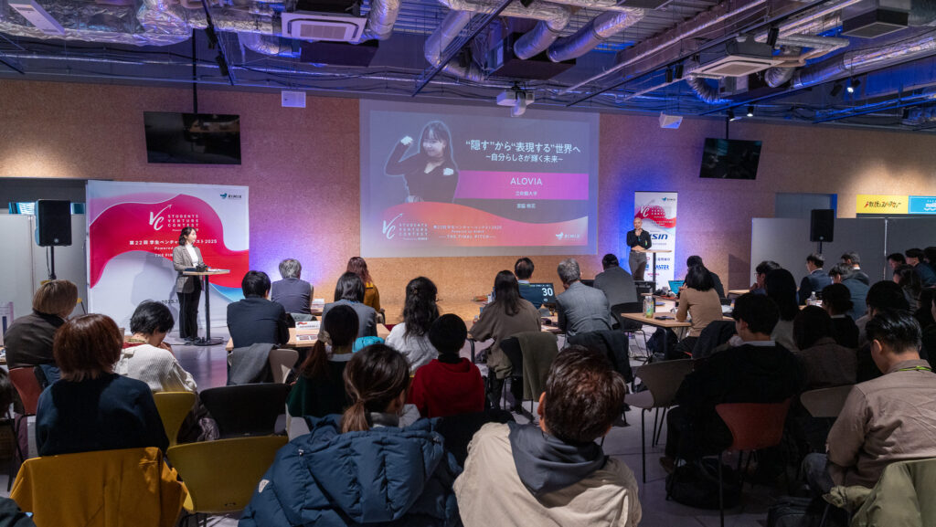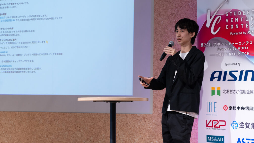 今回のベンチャーコンテストでは、これまでのベンチャーコンテストに出場したアルムナイたちも多く参加し、2022〜2024年に最優秀賞を受賞した3組が「アルムナイピッチ」として登壇し、ベンコン出場後からの自身の事業の「その後」と「いま」について語りました。
